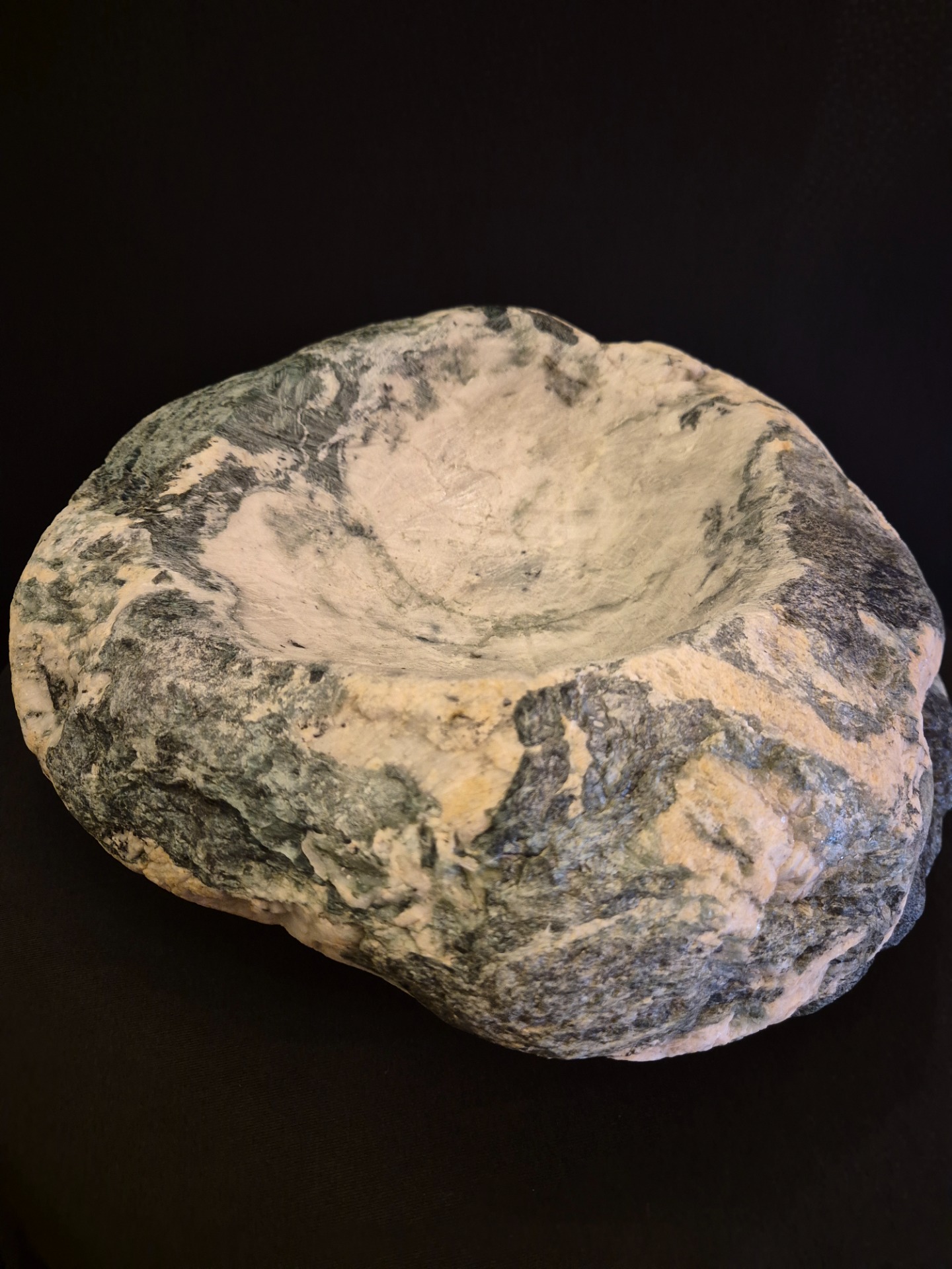 Verde Alpi zöld márvány faragott kőtál 22 x 30 x 13 cm